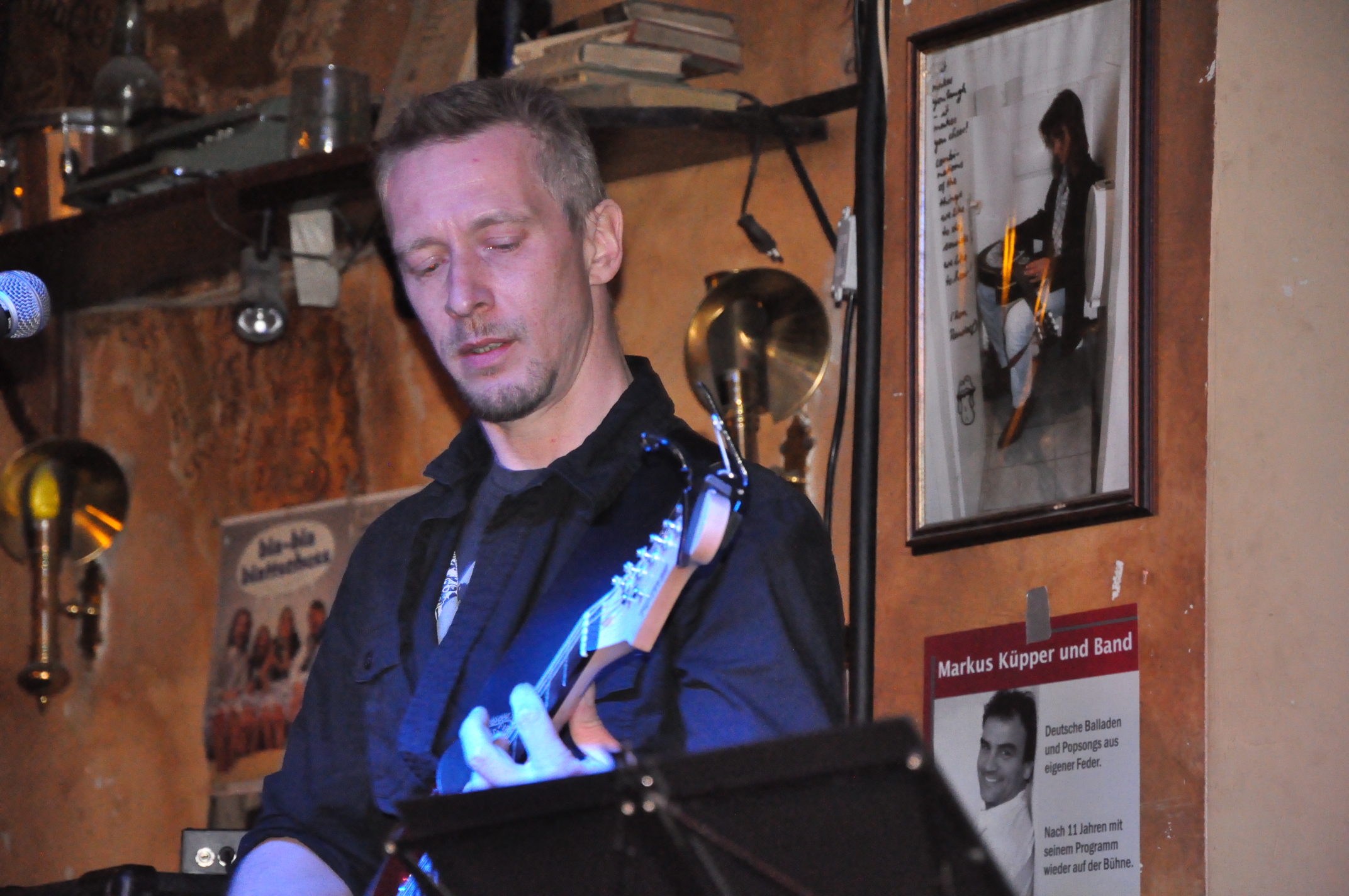 was für eine Premiere, am 28.03.2012. Die Stimmung war unvergleichlich. 11 Jahre Pause - wie weg gehaucht. Und es wird keine Pause mehr geben. Mit deutschen Songs aus eigener Feder Party und Konzert in Einem zu bieten, hätte ich mit Eurer Resonantz in diesem Ausmaß nicht erwartet. Ich danke Euch und werde mich weiterhin für Euch auf der Bühne ins Zeug legen. Ich hatte Gänsehaut bei der Begeisterung und Hingabe, die Ihr an den Tag gelegt habt.